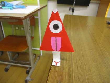 おばけやしきは段ボールなどで大きなものも作っていましたが,折り紙などで小さなおばけも作っています。今日はこんなおばけができました。しかも少し工夫して立つようにしました。素敵な工夫です。