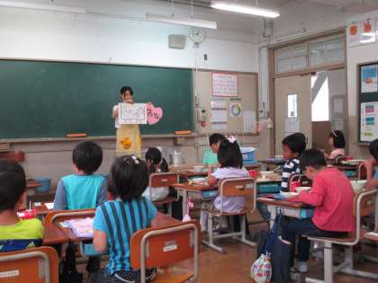 栄養教諭の先生に,給食かみしばいをしていただきました。