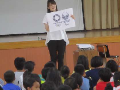 今日は7月のにこにこ集会でした。先月のえのき学級について知ろうの目標に対する各クラスの代表の発表や,今月の目標の韓国・朝鮮の文化について知ろうについての話を聞くなどしました。