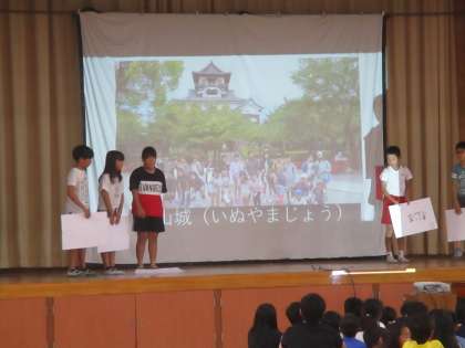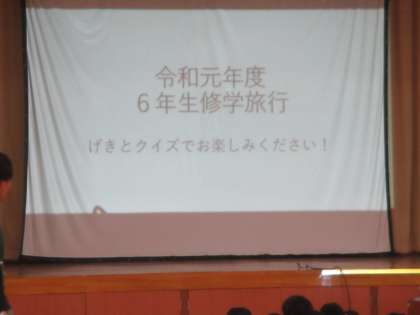 今月のにこにこ集会では,6年生が修学旅行について発表してくれていました。えのき学級の6年生は発表を頑張りました。5年生も来年の修学旅行に向けてしっかりと聞いていました。
