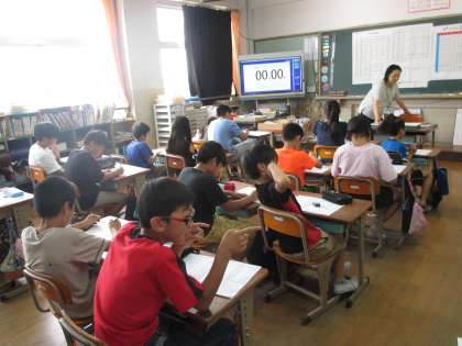 5年生では,「ハングルに挑戦」です。ハングル五十音表を使って,自分の名前を書くことにもチャレンジしました。ハングルの特徴・規則性を知り,頑張って書くことができました。学んだことを忘れずに,また学習を深めていけるといいですね。