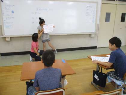 生き物図鑑で自分が担当した動物の中からクイズを作ってみんなに出題しました。なかなか詳しい特徴までクイズにしていました。