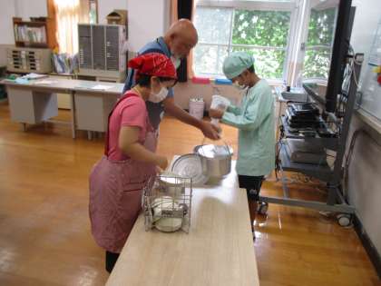 今日からさっそく給食が始まっています。えのき学級の中には今日のメニューが3本の指に入ってくると言っている子どももいました。明日のメニューは何かな?