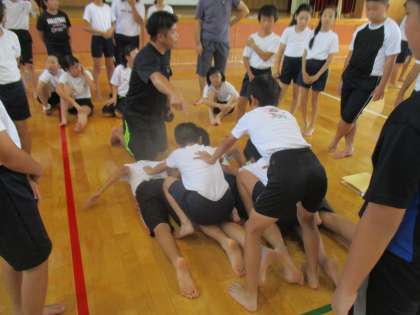 5・6年生の組体操。引き続き練習に取り組んでいます。1人技,2人技に加え今日から6人技にも取り組んでいます。ケガに気をつけながらみんなで頑張っていきます。