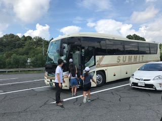 バスの中では、ビデオを楽しみながら,みさきの家に向かっています。バス酔いする子もなく,元気です。みさきの家到着を楽しみにしている子どもたちです。
