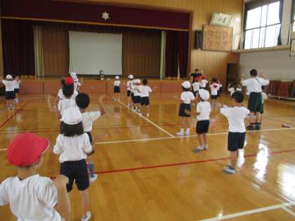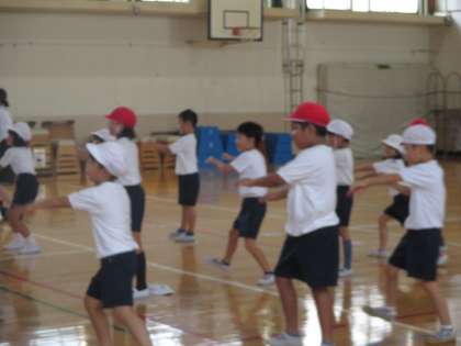 運動会に向けてダンスの練習に力が入っています。練習の前には,自分たちで声をかけあい,整列して待つ姿も。2年生の姿が1年生にも広がります。頼もしい存在ですね。
