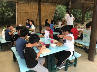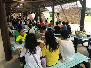 夕食です。たっぷり活動したので,おなかもペコペコ。食欲旺盛の子どもたちです。みんなで食べる食事はおいしいですね。