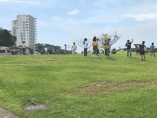 養徳小学校の交流です。雨が止んだので芝生広場で活動しました。やはり外で活動するのは楽しいですね。