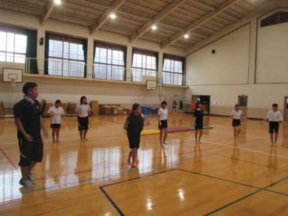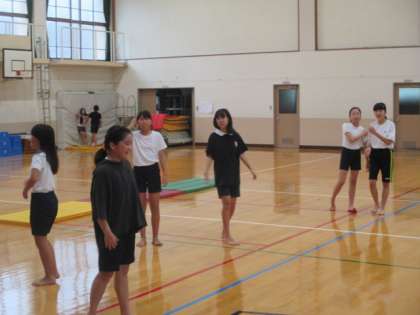 放課後にダンスの練習をしています。はじめは,ゆっくりなテンポで踊っていましたが,しばらくすると,すっかり曲のスピードに合わせて踊れるようになっていました。