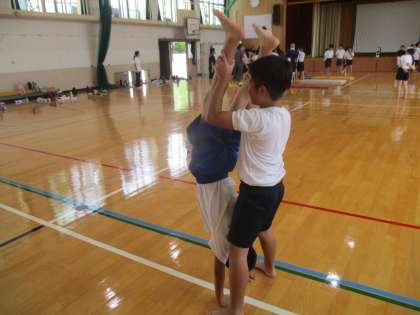今日は2人技(倒立)を練習しました。足が曲がらないことなど細部まで注意して練習しました。