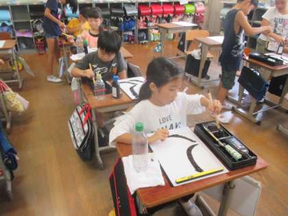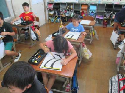 書写では,「はらい」の学習をしました。次回は,「大」という字の本番をします。