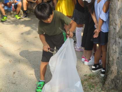 水曜日の朝は,クリーンキャンペーンです。朝から学校の前の飛鳥井公園で清掃活動を行いました。100名を超える参加人数でたくさんごみを拾いました。