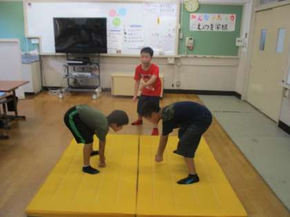 本日(9月11日)は,えのき学級のおともだちの誕生日でした。1・2時間目にお誕生日会を行いました。みんなであそぼうの時間では,ふえおに,けいどろ,相撲をしました。行司もみんなで担当し本格的な相撲大会でした。