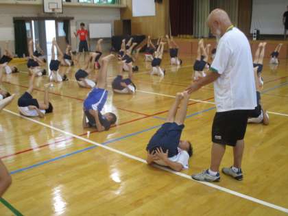 今日も組体操頑張って練習しています。メキメキ上達しています。
