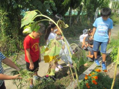 今日は運動会に向けて花壇のお世話をしました。花壇の周りの草がたくさん生えていたので綺麗にしてくれました。