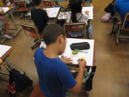 図画工作科の学習では,お話の絵に取り組んでいます。2年生が今回挑戦する絵本は「はなびのひ」です。お話を聞いて感じたこと,イメージを絵にします。お話の楽しい世界が伝わるように,楽しんで取り組んでほしいです。