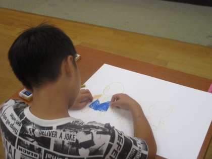 運動会を振り返り,それぞれの競技の中から1シーンを切り取って絵に描きました。5年生二人は,やはり組体操を描いていました。絵を見るだけで当日の演技を思い出せるような素敵な作品が出来上がりました。