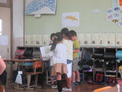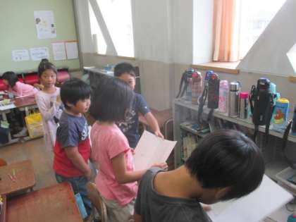 国語科の学習で,1年生に学校行事を紹介しにいきます。今日は,発表の練習をおこないました。来週中に発表会をひらきます。