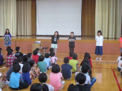 今日から後期学級代表の2人が活動をはじめてくれました。はじめての仕事は,全校の前で自己紹介と人権学習のまとめを話してくれました。