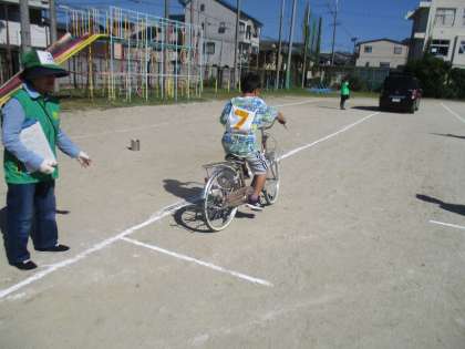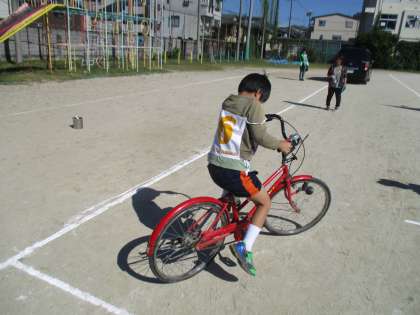 1・2時間目は下鴨警察署の警察官の方による自転車教室でした。講義を聞いたり,実際に自転車に乗る実技をしたりして安全な自転車の乗り方について学習しました。
