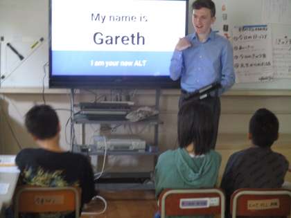 今日ははじめてALTの先生に教室に来ていただいて,外国語の授業をしました。先生の出身国などについてのクイズを交えた自己紹介を聞きながら英語に親しみました。