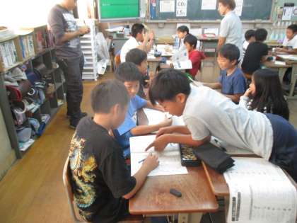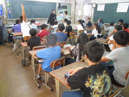 5年生の交流学習でエコライフチャレンジの学習をしました。CO2の排出量など環境問題などについての話を聞きました。グループワークでは,5年生のおともだちにも助けてもらいながら学習に取り組むことができました。