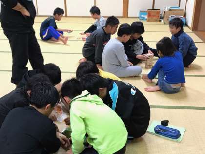 今日一日の振り返りをしました。今日の反省を明日の活動につなげてほしいと思います。