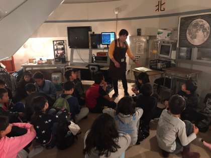自然保護センターでプラネタリウムを見ました。秋の星座について教えてもらいました。福井で一番大きい天体望遠鏡の中も見せてもらいました。