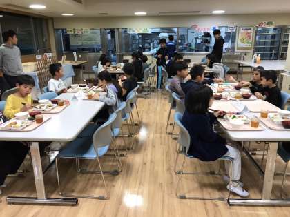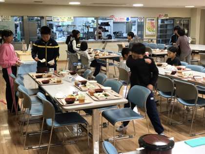 3日目の夕食です。食事係がグループのみんなの分を手際良く準備してくれています。今晩も,美味しくいただきます。