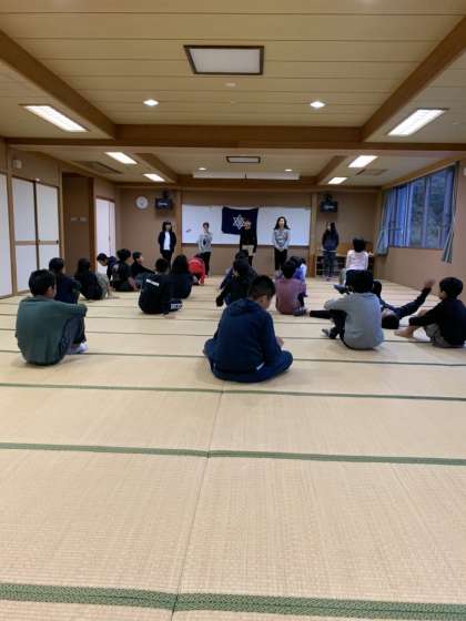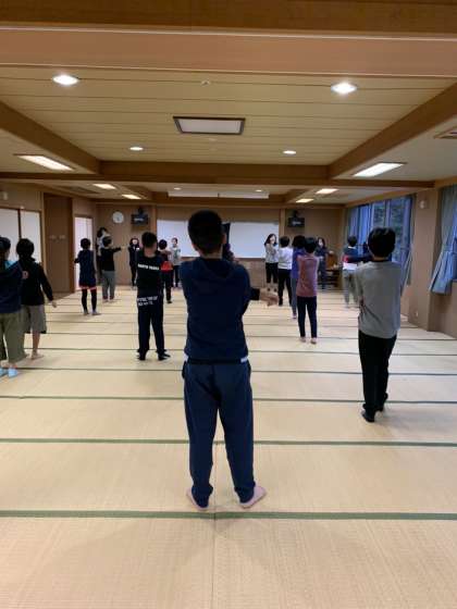 ぐっすり寝た子どもたち。保健係の体操をしてシャキッと目覚めました。
