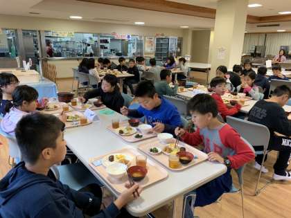 朝食です。今日は,中華粥もありました。温まります。お腹いっぱい食べて,今日の活動に備えます。