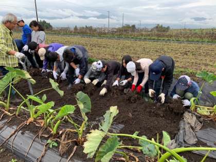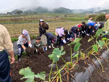 奥越は里芋の産地です。大きな里芋を収穫しました。たくさんのお土産ができました。