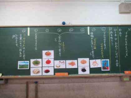 国語科では,「すがたをかえる大豆」の学習をしています。学習で文章の構成や食品選びをして,最後には紹介カードを作ります。どんなカードができるのか楽しみです。