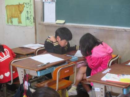 「漢字の意味」の学習を通して,漢字間違い探しクイズを作っています。友だちと相談して下書きができ上がりました。