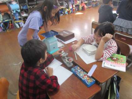 重さの学習で「はかり」を使いました。色々なはかりに触れ,子どもたちは「重さ」に興味を持つことができました。
