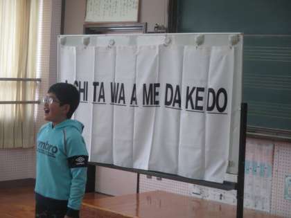 「美しい日本語の話し方教室」という学習で,劇団四季の俳優さんに来ていただき,発声の練習や歌の練習を一緒にしていただきました。やはり俳優さんの声には,迫力がありました。