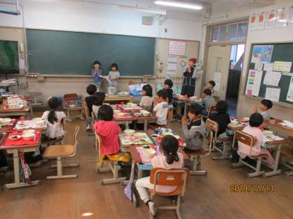 今日の給食は,ごはん・牛乳・親子煮・ひじき豆でした。最近,1年生ではおかずとごはんを交互に食べることをがんばっています。ごはんに合うおかずはどっち?と聞いてきます。親子煮とごはんを交互に食べて,親子丼みたいにしていました。ひじき豆もよく合っていました。ごはんまで完食できました♪すばらしいです。