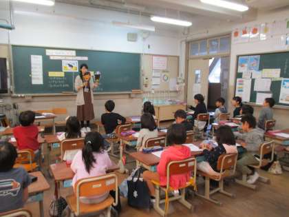 栄養教諭の東先生と一緒に,食事時のあいさつの意味について考える学習をしました。