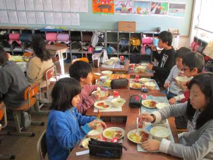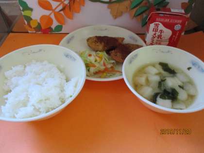 今日の給食は,ごはん・牛乳・ヒレカツ・野菜のソテー・みそ汁でした。ヒレカツは,昨日から楽しみにしていた子もいるくらい人気のメニューです。ソースまで手作りです。調理員さんに感謝の気持ちを込めていただくことができました。