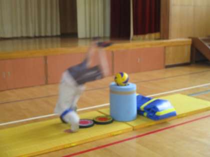 体育の学習でマット運動をしました。得意な子は障害物を置いてのとび前転まで取り組んでいました。手の付き方,頭の入れ方など怪我にも気をつけながら取り組んでいます。