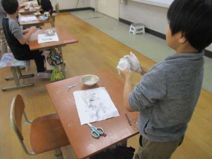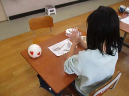 作ったたまごの中から生まれてくるものを紙粘土で作りました。今日は形作りで後日色付けをする予定です。何が生まれてくるのか今から楽しみです。