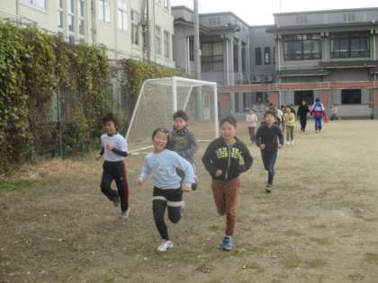 3年生がんばっています。時間は10分間です。自分のペースを守って精一杯がんばています。山の家に行って少し時間は空きますが,帰ってくるとまた業間マラソン頑張ります。
