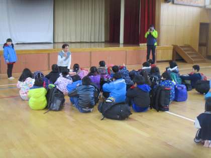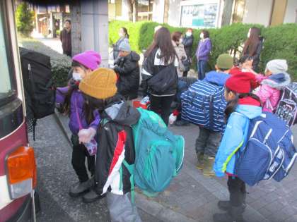 3年生にとって初めての宿泊学習「冬山教室」へ出発です。今年は全く雪が降らず,楽しみにしていた雪遊びやそり遊びもできないと思っていました。しかし,奇跡が起きました。なんと今朝7時30分現在山の家の積雪は10cm。そり遊びもできます。