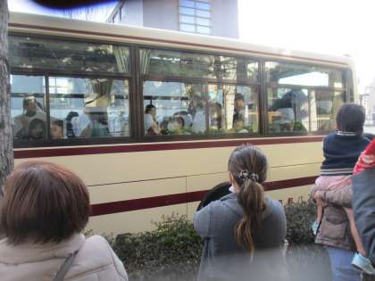 楽しみな気持ちをいっぱいもって,花背山の家に出発です。出発式では,たくさんの笑顔が見られました。1泊2日,雪を堪能してほしいと思います。