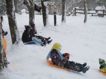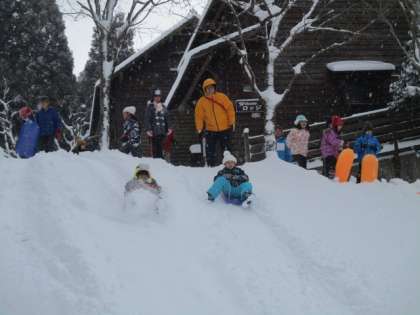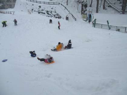 昨夜に降ったふわふわの新雪で,雪遊びを存分に楽しみました。初めは恐る恐るだったそり滑りも,慣れてくるととても上手に乗ることができていました。