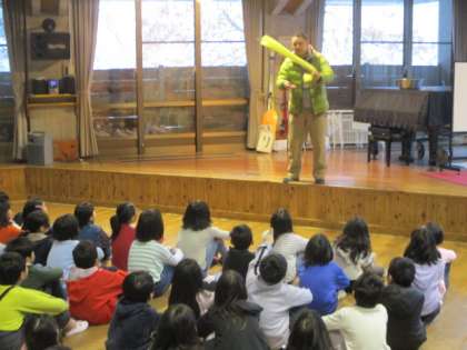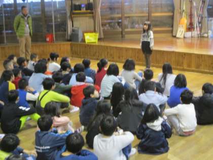 朝のつどいでは,保健係による体操や,池田東小学校と一緒にお互いの学校紹介も行いました。