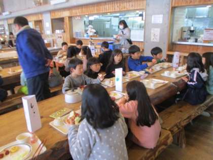 朝食も,食欲旺盛です。午前中の活動のエネルギーを蓄え,今日もたっぷり雪遊びを楽しみます。