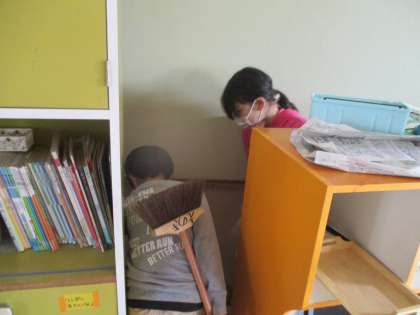 今日は掃除時間を飛び越えてみっちり掃除をしていました。ロッカーや本棚の後ろまできれいに掃除をしていました。