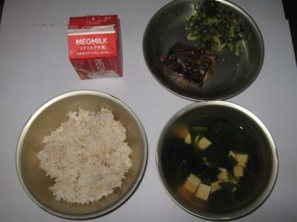 すまし汁でした。さばはしょうが煮にすることが多いのですが,今月はトウバンジャンや米酢を使ったかわり煮でした。骨があるので四苦八苦しながら食べていました。