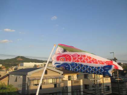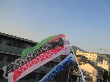 またまた聞こえてきました。こいのぼりの歌です。給食室前から聞こえてきます。